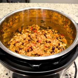Saute Vegetables: Switch on the Saute mode on your Instant Pot. Add ½ cup of vegetable broth and cook the diced onions for a few minutes until softened. Next, add the minced garlic and diced peppers, allowing them to cook for an additional two minutes.